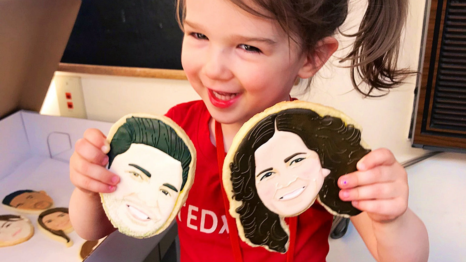 Each portrait cookie can take several hours to complete and is lovingly hand-crafted by Founder and Artist Jasmine Cho. Watch the short clip below to see what the process looks like!